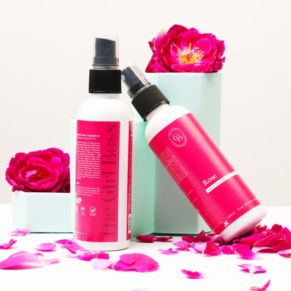 Rose Skin Toner is a revitalising Ayurvedic blend specially formulated for dry skin. Enriched with rose distillate and therapeutic herbs like Champa, Padmak, and Peepal, it gently tones, hydrates, and rejuvenates, giving your skin a fresh, radiant glow with every use.